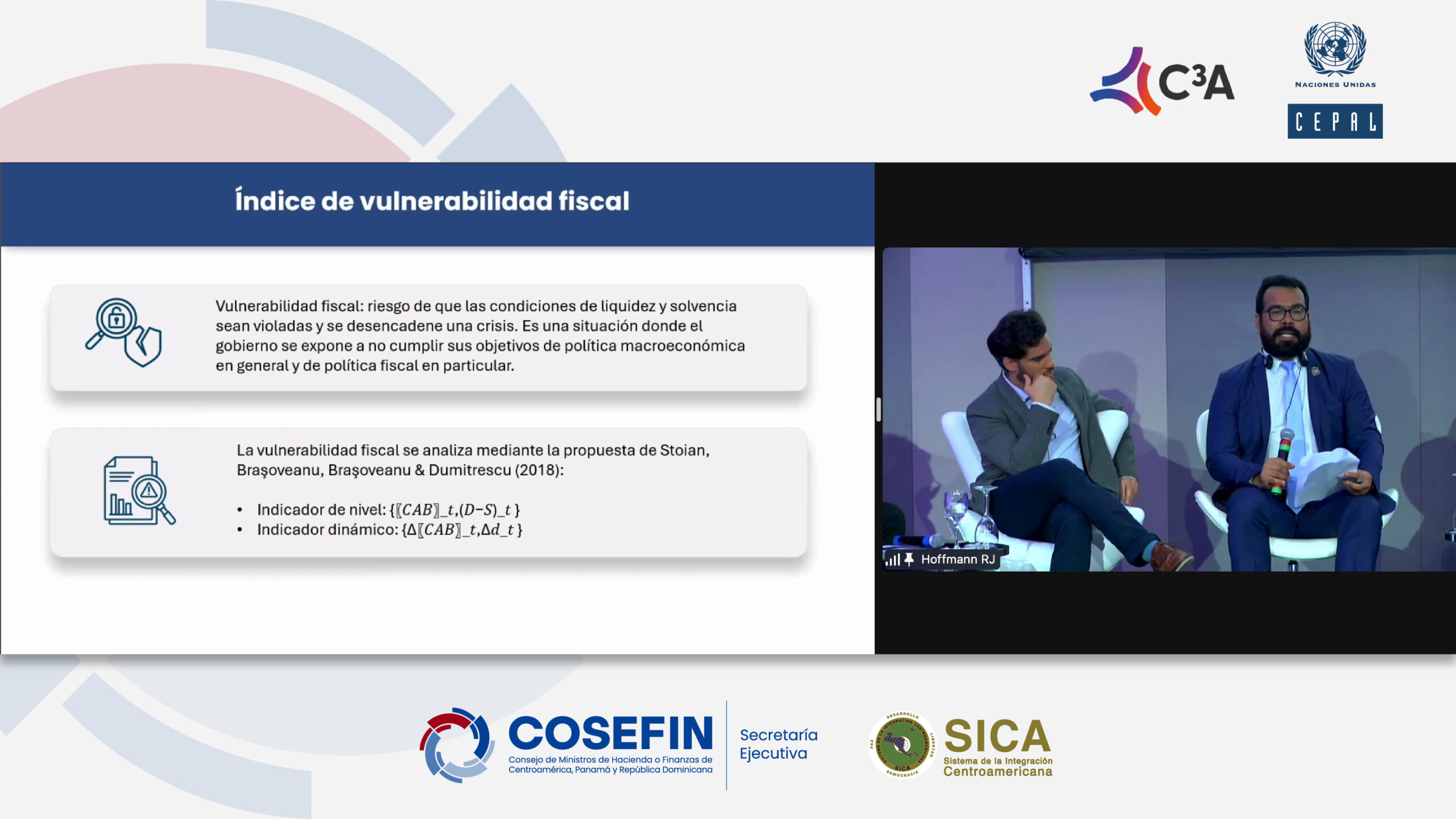 En su presentación, el Secretario Flores abordó la «Sostenibilidad de la deuda en Centroamérica», destacando los desafíos fiscales que enfrentan los países de la región en un contexto de alta vulnerabilidad climática. Subrayó la importancia de fortalecer las capacidades institucionales y adoptar mejores prácticas en la medición de impactos climáticos para garantizar la resiliencia económica. Enfatizó que la alta vulnerabilidad de las economías centroamericanas a los desastres naturales, como huracanes y tormentas, requiere una respuesta coordinada y efectiva que combine inversión pública, gestión de deuda y políticas fiscales adaptativas.