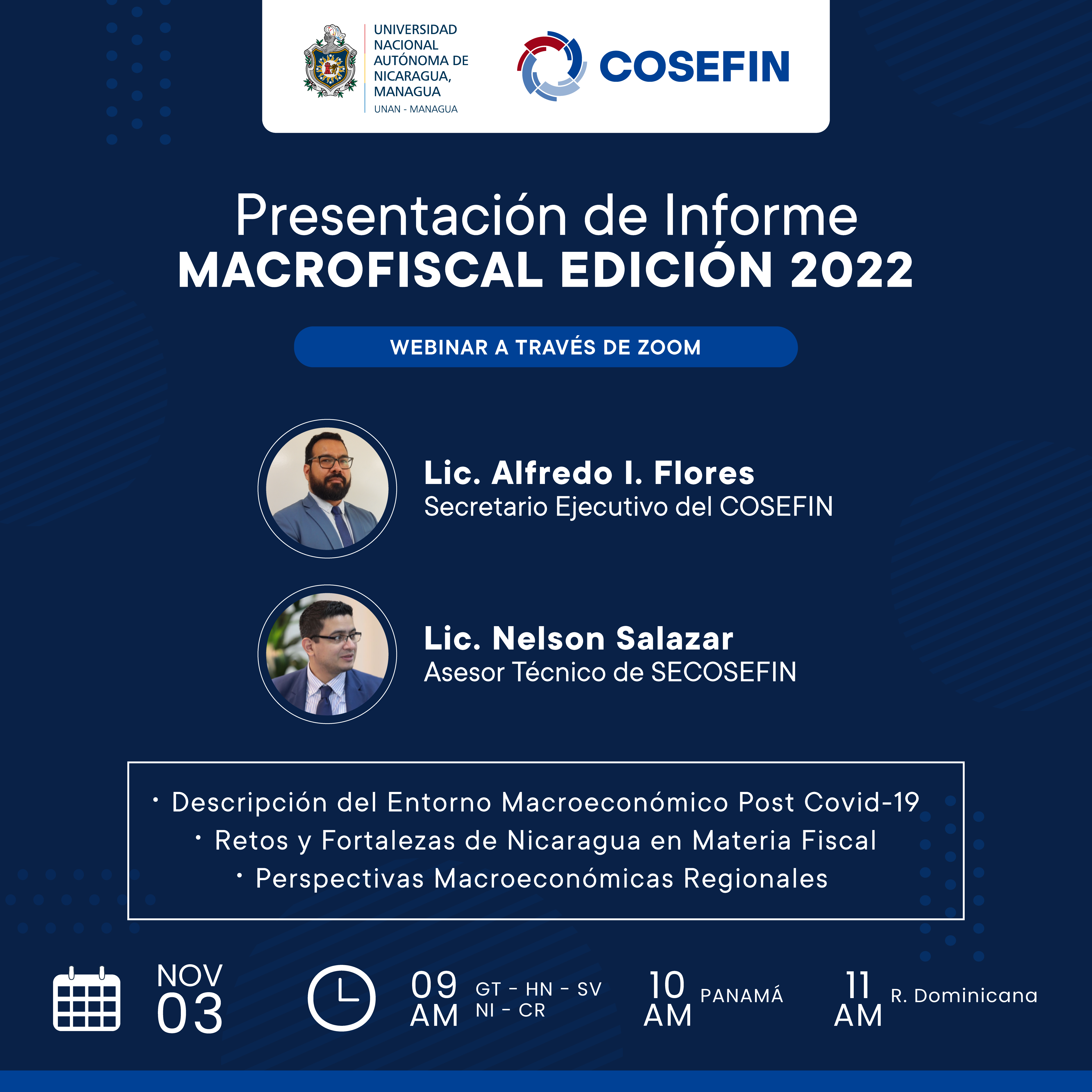 Secretario Ejecutivo del COSEFIN junto al Asesor Técnico de la Secretaría, realizarán una presentación ante estudiantes de la Universidad Nacional de Managua, la cual abordará temas como: