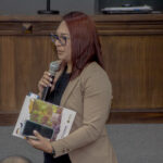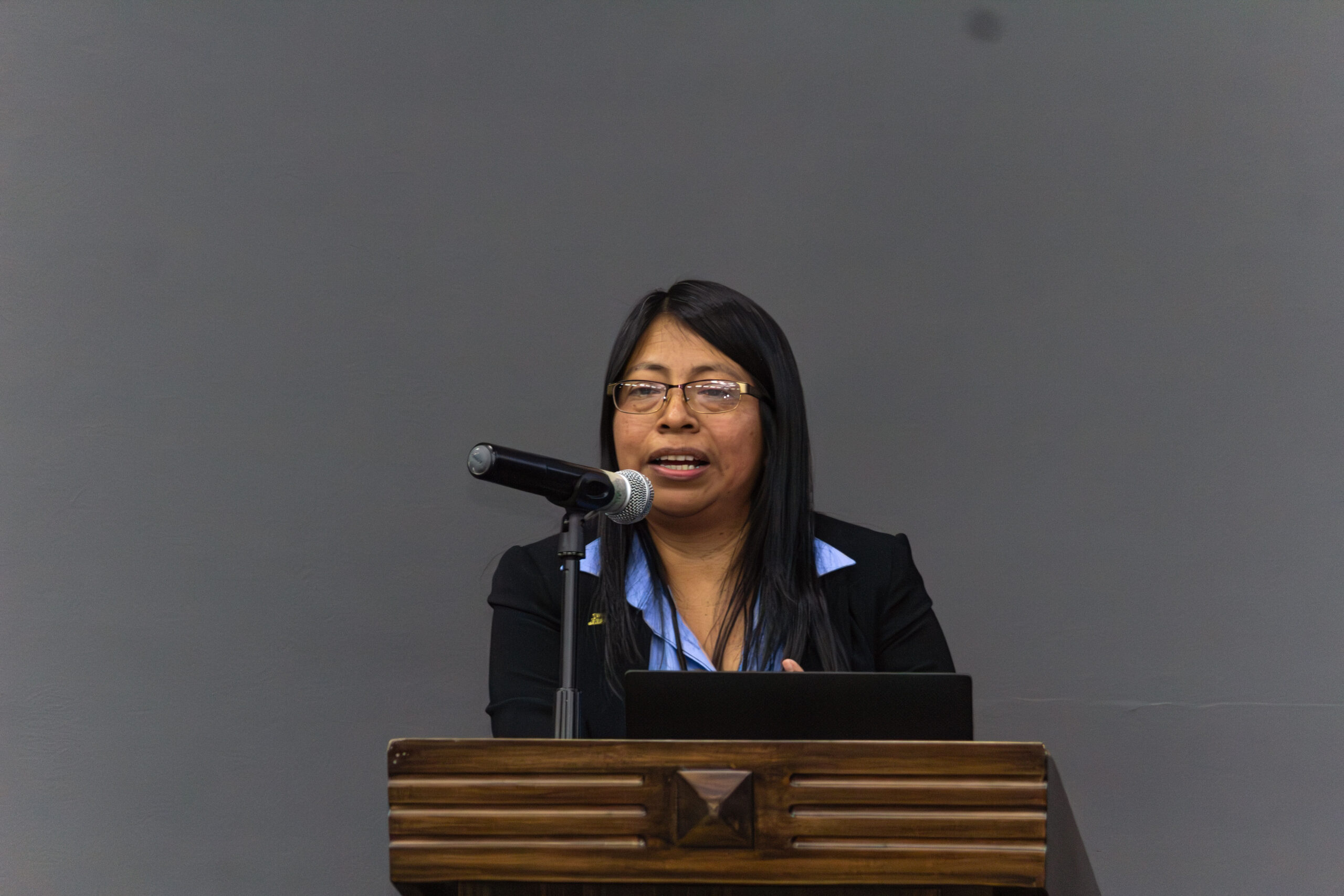 Lucía Temaj, mujer maya Jefa de Unidad de Fiscalización Temporal, de la Superintendencia de Administración Tributaria de Guatemala, agradeció el intercambio de experiencias y en su lengua natal especificó: