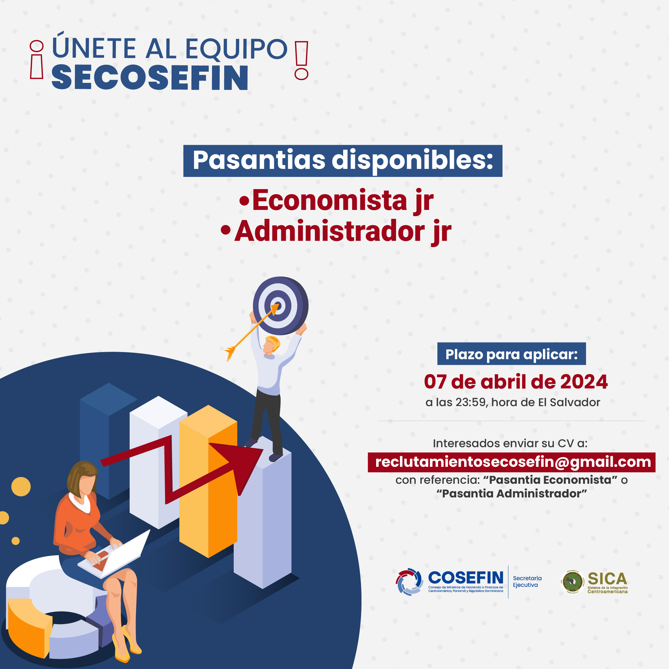 A través del programa de pasantías remuneradas, la SECOSEFIN ofrece a jóvenes en formación universitaria, la oportunidad de conocer las operaciones de la instancia regional que conforman los Ministerios de Hacienda o Finanzas dentro del Sistema de Integración Centroamericana (SICA), a la vez que apoyan a la Secretaría en distintas labores, fortaleciendo su experiencia profesional.