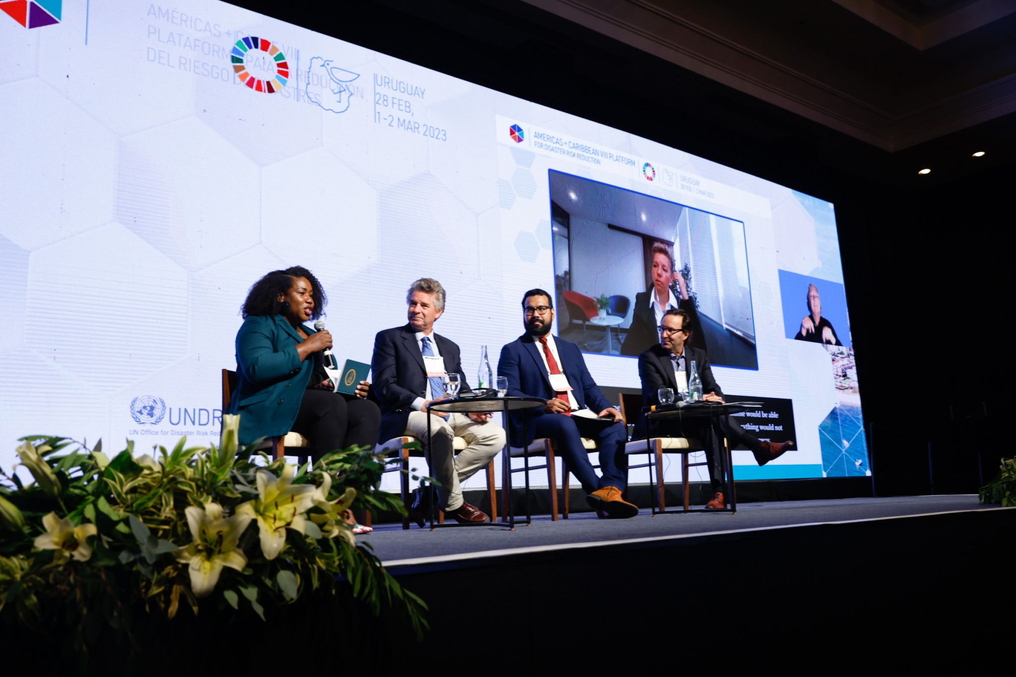 La primera participación del Secretario Ejecutivo se llevo a cabo durante el día 1 de marzo en la sesión plenaria número 3, denominada: «Financiación del desarrollo resiliente basada en evidencia: una visión estratégica hacia las inversiones sostenibles y eficientes». En dicha sesión participaron de manera presencial: Gerardo Amarilla, Viceministro de Ambiente de Uruguay; Francois Borit Representante en Uruguay, Banco de Desarrollo de América Latina; y de manera virtual: Carolina Díaz Giraldo, Directora de Ambiente y Desarrollo Sostenible del Departamento Nacional de Planeación de Colombia. La sesión estuvo moderada por Lizra Fabien Coordinadora de ARISE para Dominica y miembro de la Junta Directiva de Global ARISE