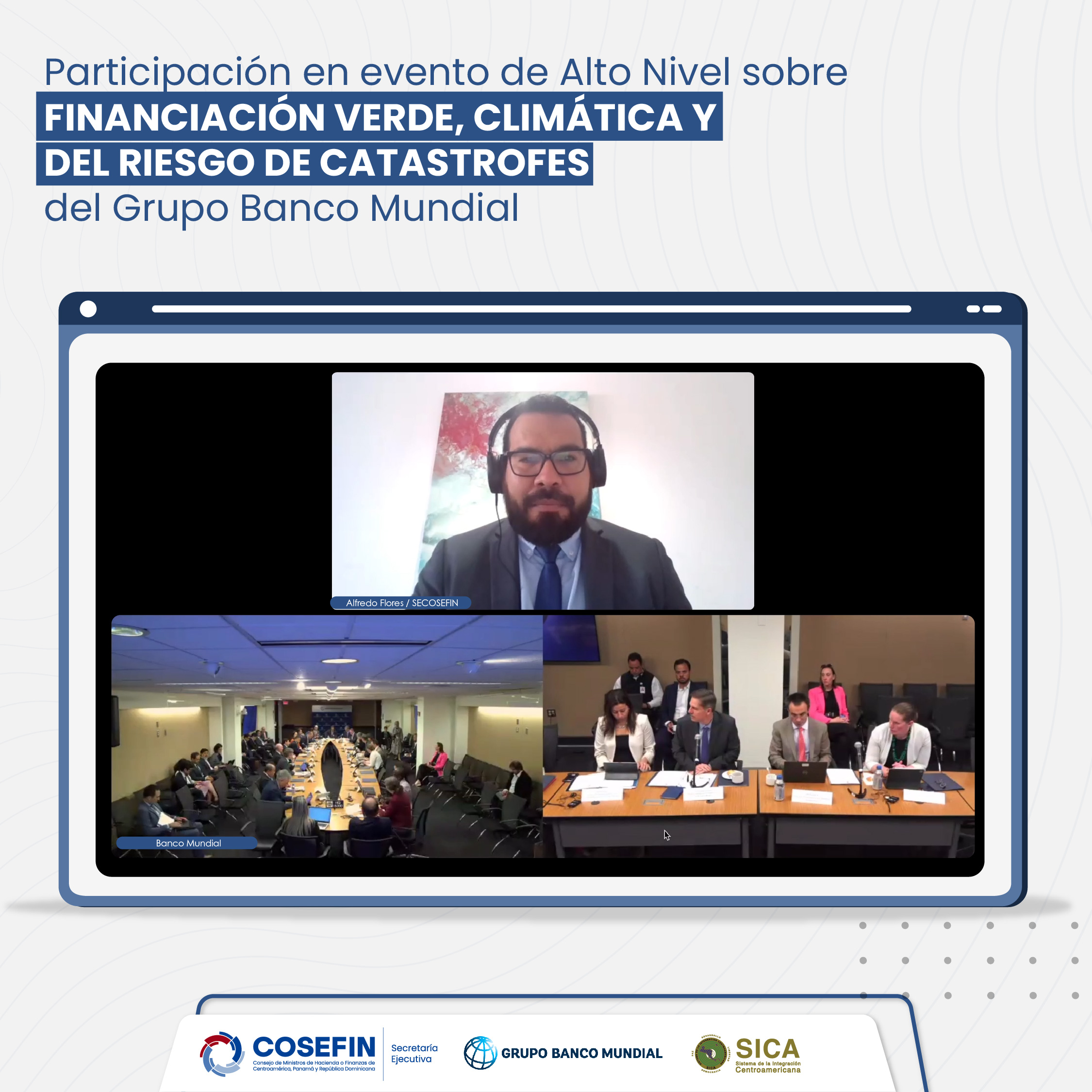 El Secretario Ejecutivo del Consejo de Ministros de Hacienda o Finanzas de Centroamérica, Panamá y República Dominicana (COSEFIN), Alfredo Ibrahim Flores Sarria, participó en el evento de alto nivel sobre financiación verde, climática y del riesgo de catástrofes durante las reuniones de Primavera del Banco Mundial.