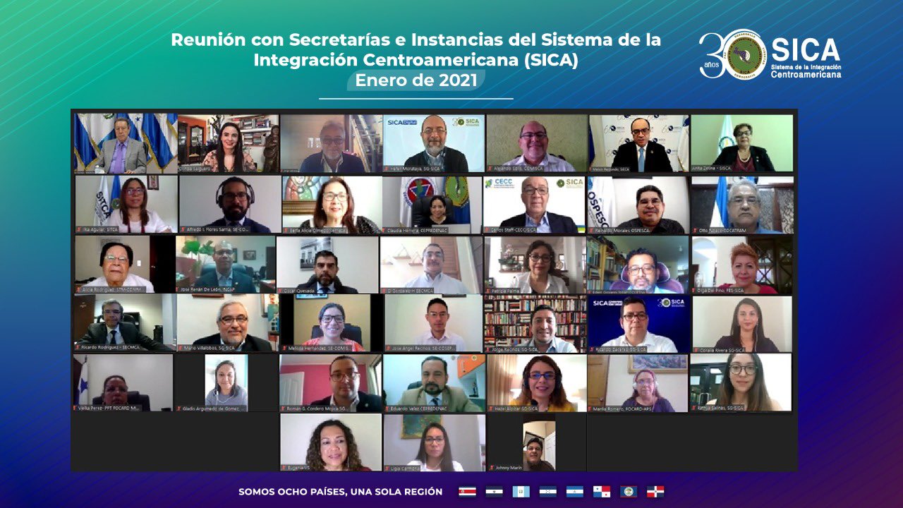 Centroamérica, 26 enero de 2021. La Secretaría General del Sistema de la Integración Centroamericana (SICA) sostuvo un diálogo con toda la institucionalidad regional, para profundizar la articulación y la coordinación intersectorial, así como el impulso de acciones conjuntas de cara a la recuperación y reactivación de Centroamérica y República Dominicana en el escenario poscovid-19.